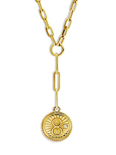 Baby Karma Medallion On Yellow Gold Refined Clip Necklace