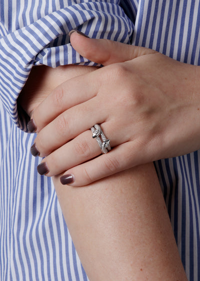 Diamond Pavé Snake Bookend White Gold Bands
