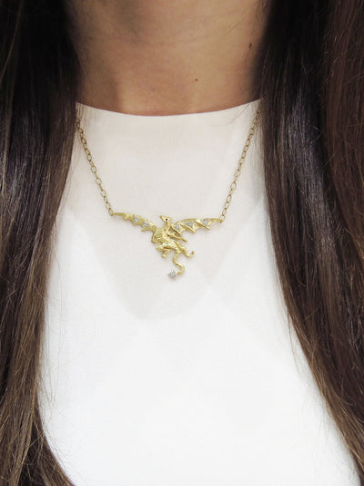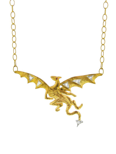 Ruby and Diamond Dragon Yellow Gold Necklace